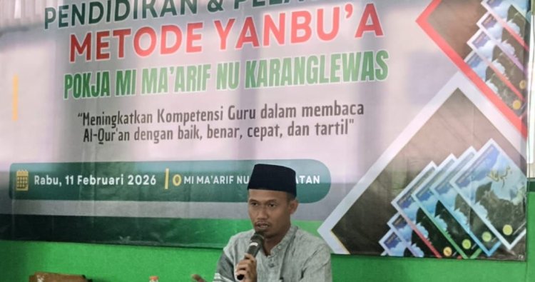 KARANGLEWAS - Komitmen menguatkan kualitas pembelajaran Al-Qur’an kembali ditegaskan Pokja Ma’arif Kecamatan Karanglewas, Kabupaten Banyumas. Sebanyak 60 guru MI Ma’arif se-Kecamatan Karanglewas mengikuti Pendidikan dan Pelatihan (Diklat) Metode Yanbu’a yang digelar di MI Ma’arif NU 01 Pangebatan, Rabu (11/02/2026).